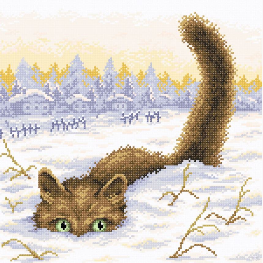 Brilli Art картина стразами МС-033 Кот в снегу 38*38 см 20 цветов
