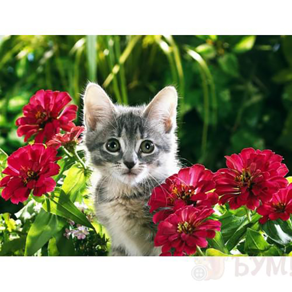 Гранни Ag422 Алмазная мозаика Котенок в цветах 48*38см
