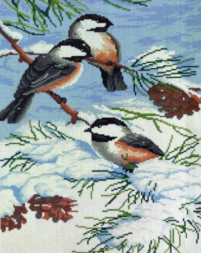Painting Diamond GF1762 Алмазная мозаика Синицы на еловой ветке, 40*50см