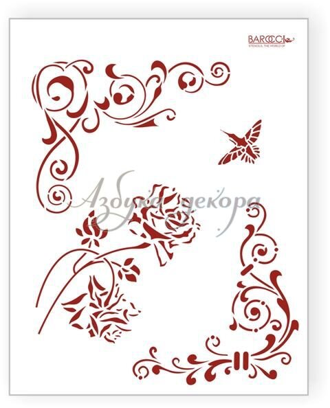 Barocci Трафарет для декора Роза и колибри - Рукоделкино Товары для творчества Фурнитура для украшений