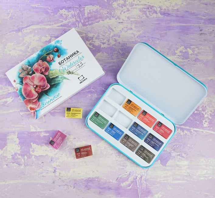 Малевичъ Набор акварели в кюветах "Ботаника", 12 цветов, 2,5 мл