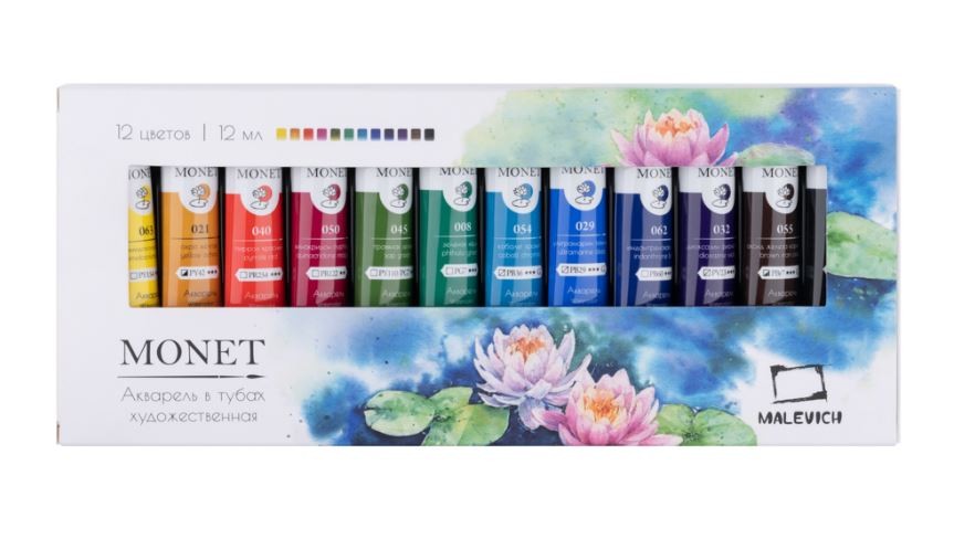 Малевичъ Набор акварельных красок "Моне", 12 цветов, 12 мл