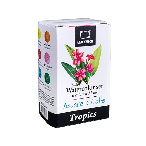 Малевичъ Набор акварельных красок "Тропики", 6 цветов, 12 мл