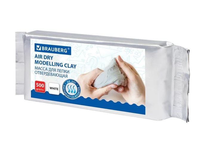 BRAUBERG Самозатвердевающая пластичная масса, белая, 200г