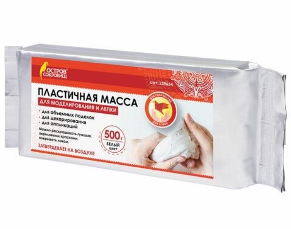 Остров сокровищ Самозатвердевающая пластичная масса, белая, 500г