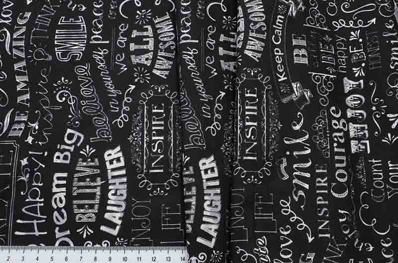 Ткань AL-m9003 хлопок 100%, h-110см белые надписи на черном