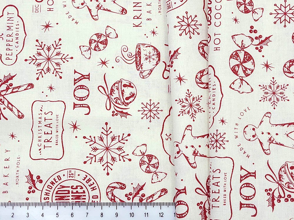 Ткань корейский хлопок 100%, h-110 см с рождественским принтом