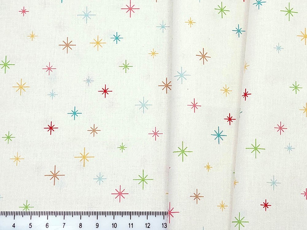 Ткань корейский хлопок 100%, h-110 см молочный со снежинками