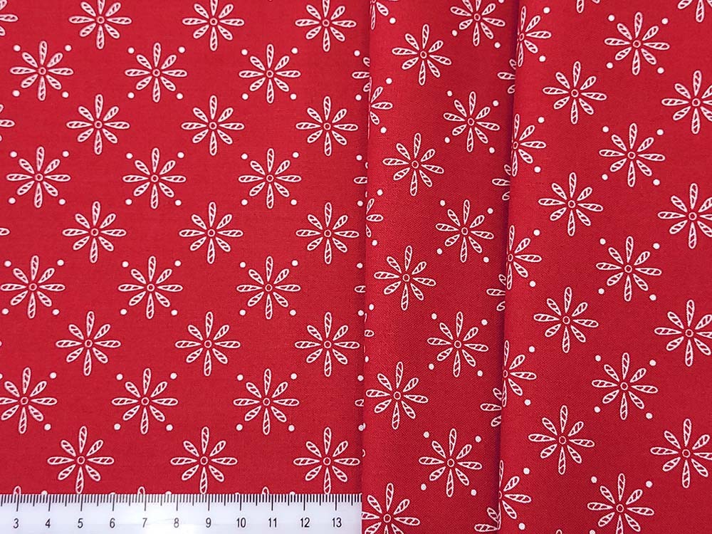 Ткань Корейский хлопок 100%, h-110 см красный с белыми цветами, м