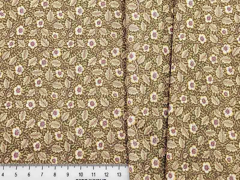Ткань Корейский хлопок 100%, h-110см зелёный с бежевыми цветами и листьями