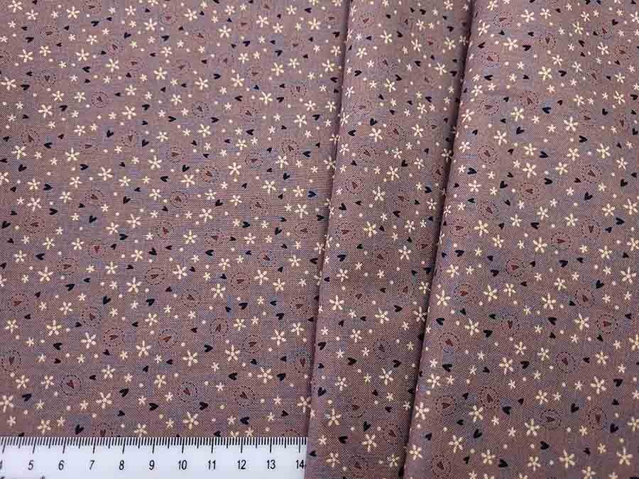 Ткань Корейский хлопок 100%, h-110см мелкие беж цветы + сердечки на серо-корчн