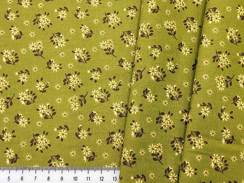 Ткань Корейский хлопок 100%, h-110см оливковый с ромашками