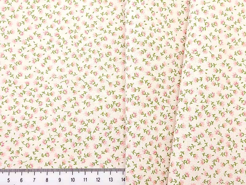 Ткань Корейский хлопок 100%, h-110см мелкие розовые цветы на белом