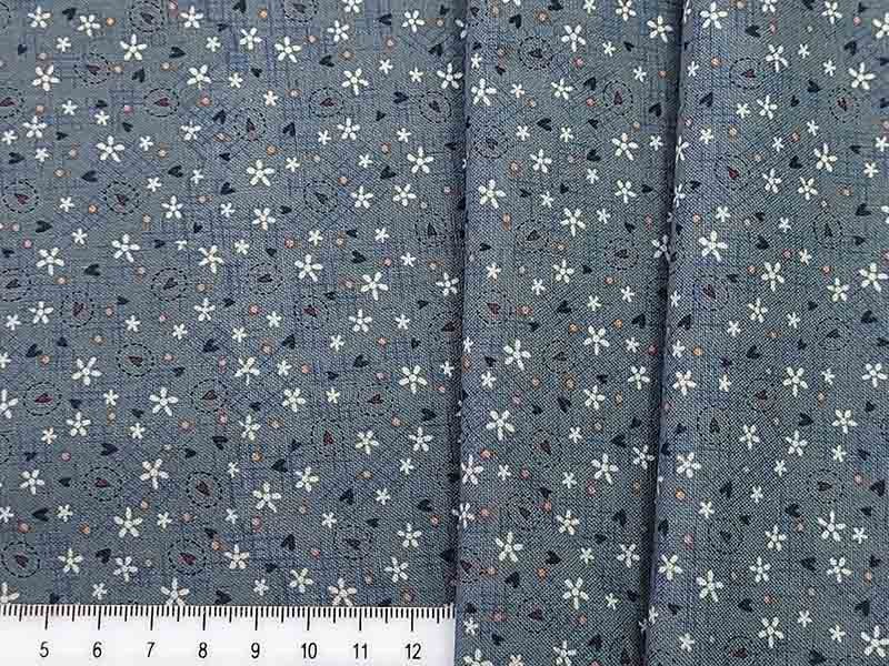 Ткань Корейский хлопок 100%, h-110см мелкие серые цветы + сердечки на сером