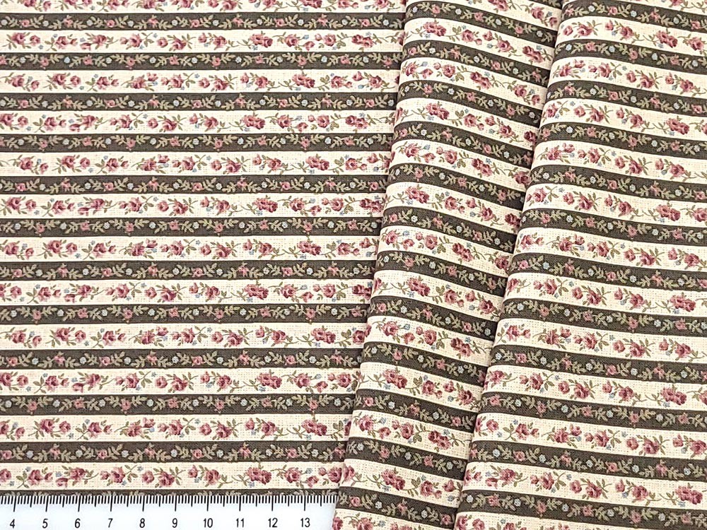 Ткань Корейский хлопок 100%, h-110см в зеленую полоску с розами
