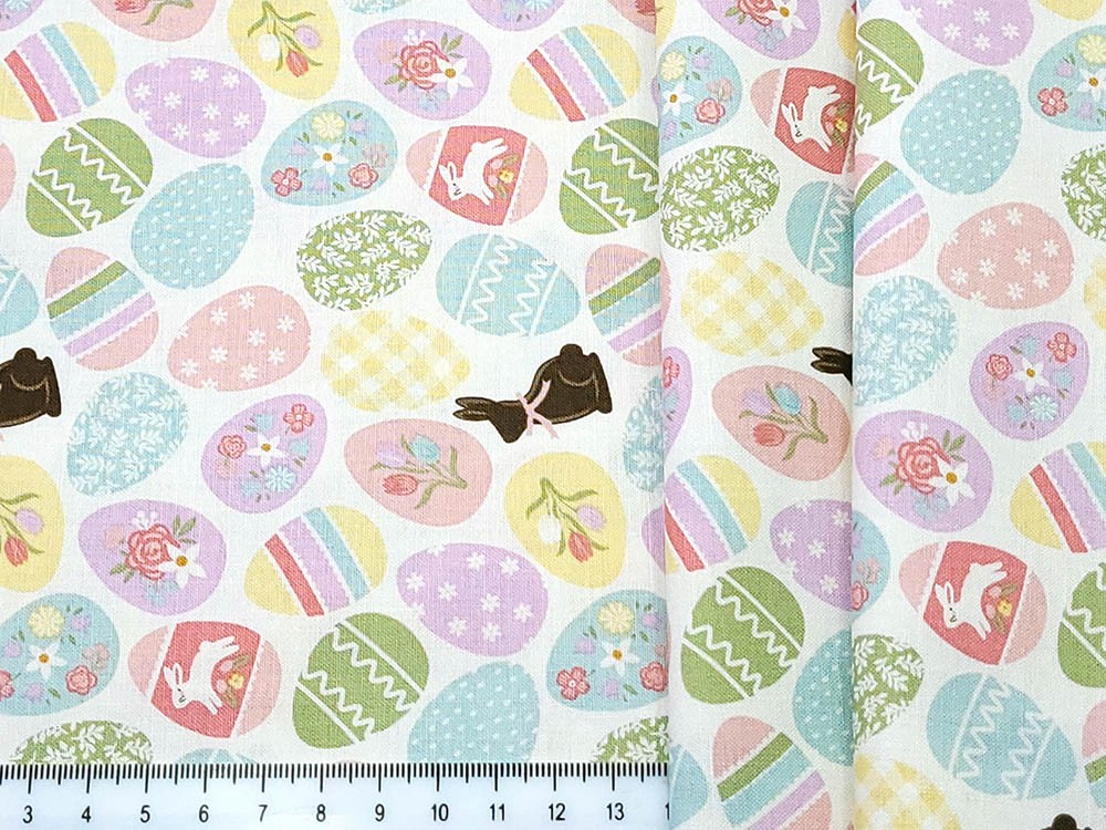 Ткань Корейский хлопок 100%, h-110 см, пасхальные яйца и зайцы
