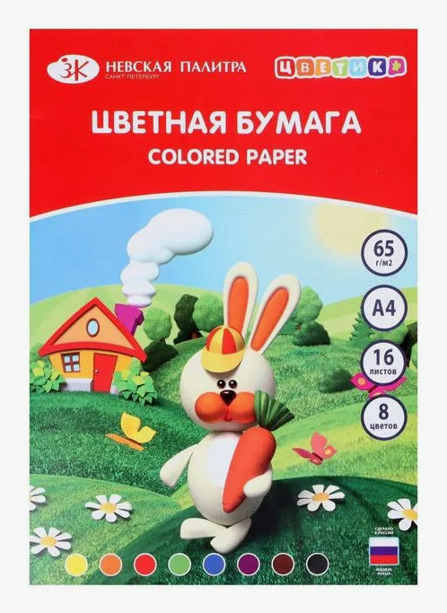 Главная / Всё для творчества и хобби / Скрапбукинг / Бумага / Цветик Набор цветной бумаги, 210*297мм, 16 листов, 8 цветов, бумага односторонняя
