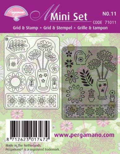 Pergamano Набор прозрачных штампов "Цветочки в горшочках" + трафарет металлический №11, 7.5*10см
