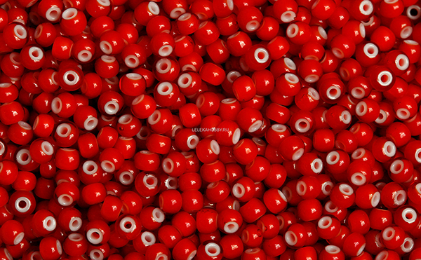 Бисер чешск Preciosa кругл, 10/0, 93730 красный, бел линия внутри, 5гр