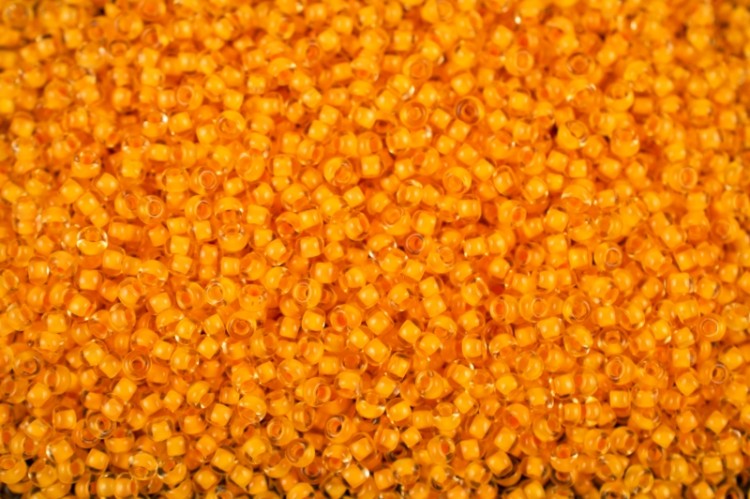 Бисер чешск Preciosa кругл, 10/0, 80883 прозр, оранж желтая линия внутри 5гр