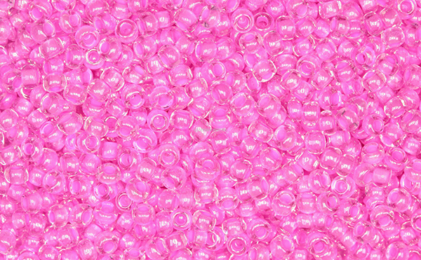 Бисер чешск Preciosa кругл, 10/0, 38177 прозр с ярко розов прокрасом блестящ 5гр