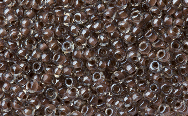 Бисер чешск Preciosa кругл, 10/0, 38618 прозрачн с шоколадн прокрасом блестящ , 5гр