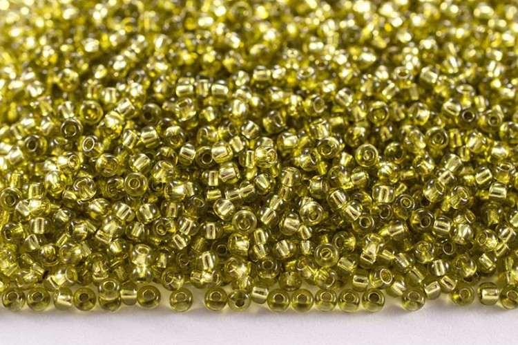 Бисер чешск Preciosa кругл, 10/0, 78151 светлый зел желтый с серебр прокрасом прозр 5гр