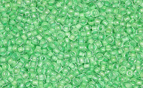 Бисер чешск Preciosa кругл, 10/0, 38154 прозрачн салат со светл прокрасом 10, 5гр