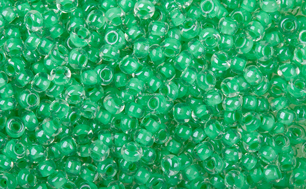 Бисер Preciosa круглый 10/0, 38656 прозрачн с ярко зеленым прокрасом блестящ, 50гр
