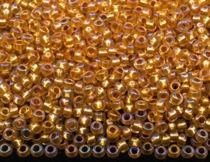 Бисер Preciosa круглый 10/0, 68484 прозрачный радужный, золотая линия внутри 50гр