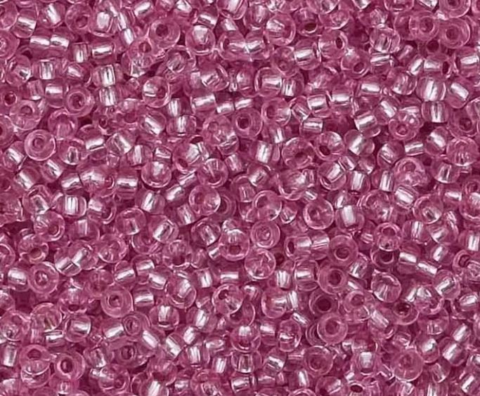 Бисер Preciosa круглый 10/0, 78192 розовый, серебряная линия внутри, 50гр