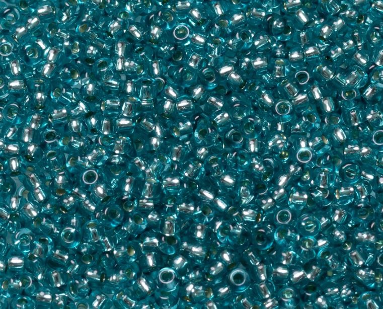 Бисер Preciosa круглый 10/0, 78633 прозрачный, сине-зелёный серебряная линия внутри 50гр