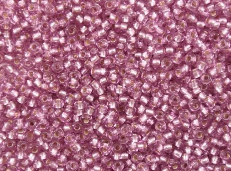 Бисер Preciosa круглый 10/0, 78695 розовый, серебряная линия внутри, 50гр