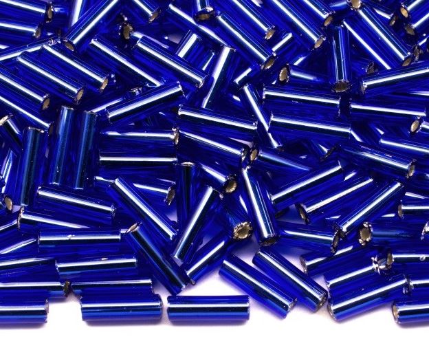 Бисер чешский Preciosa стеклярус 7мм, 37080  синий, серебряная линия внутри, 50г - Рукоделкино Товары для творчества Фурнитура для украшений