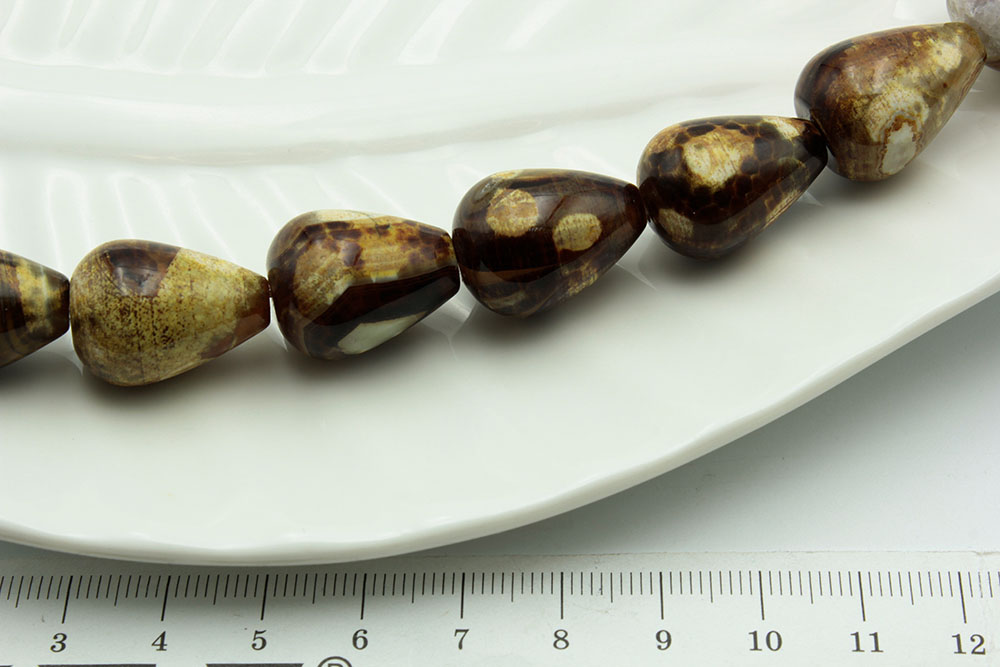 Агат облагороженный бежевый капля 20*15мм 8шт/нить