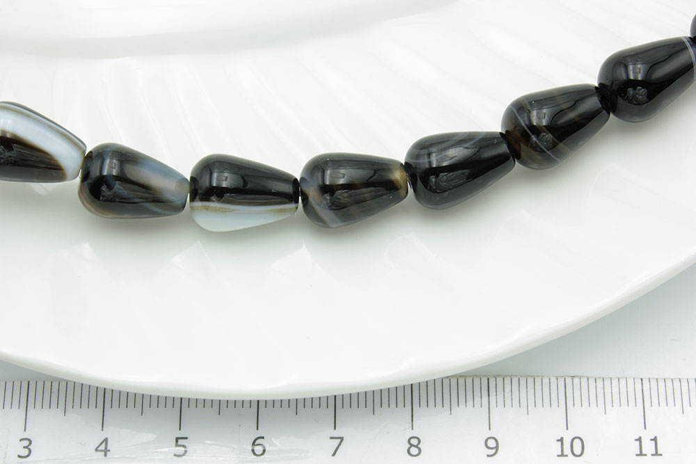 Агат черный+серый капля 14*10мм 16шт/нить