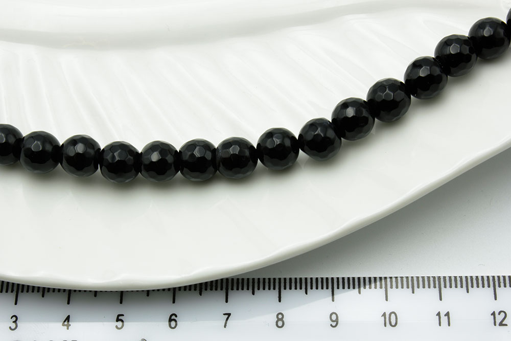 Агат черный круглый граненый 7мм 19см/нить