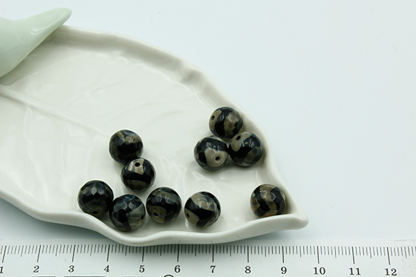 Агат черн облагорож, узор волной, круглая гран 10мм, 10шт/уп