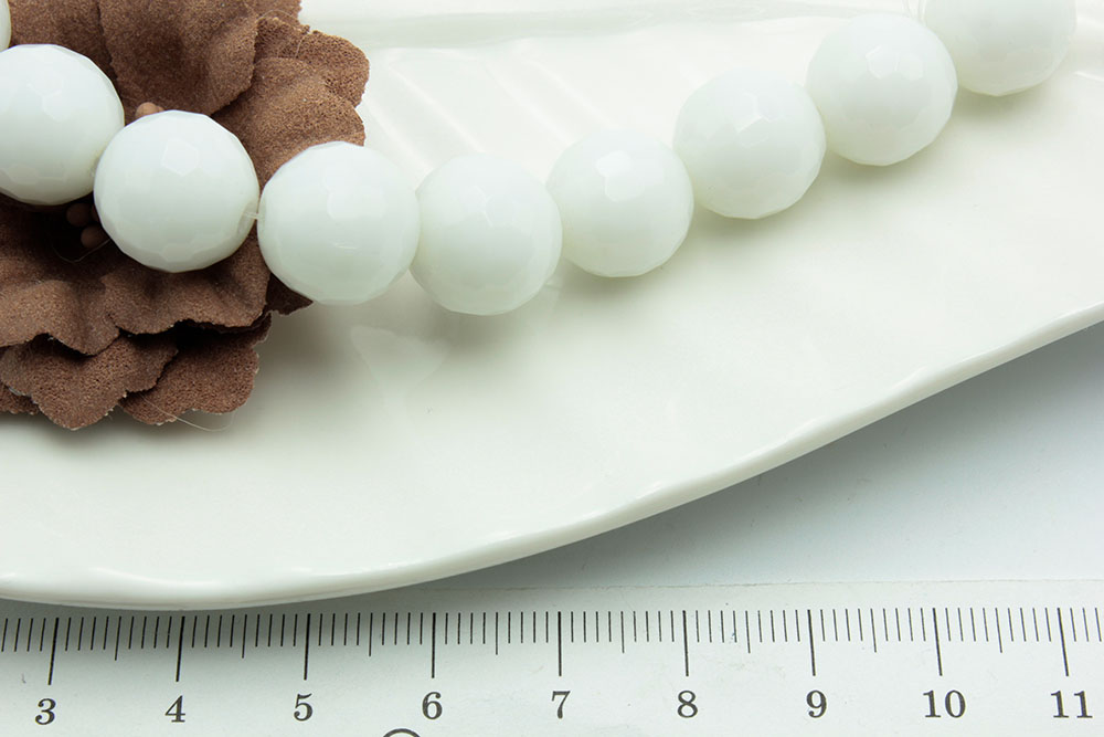 Агат белый круглая граненая 12мм, 11шт /нить