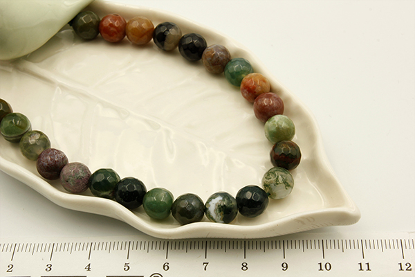 Агат моховый, разноцвет, круглый гран, 8мм, 47шт/нить