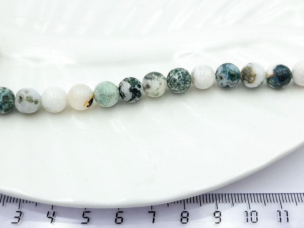 Агат моховый, круглый 8 мм, 15 шт/нить