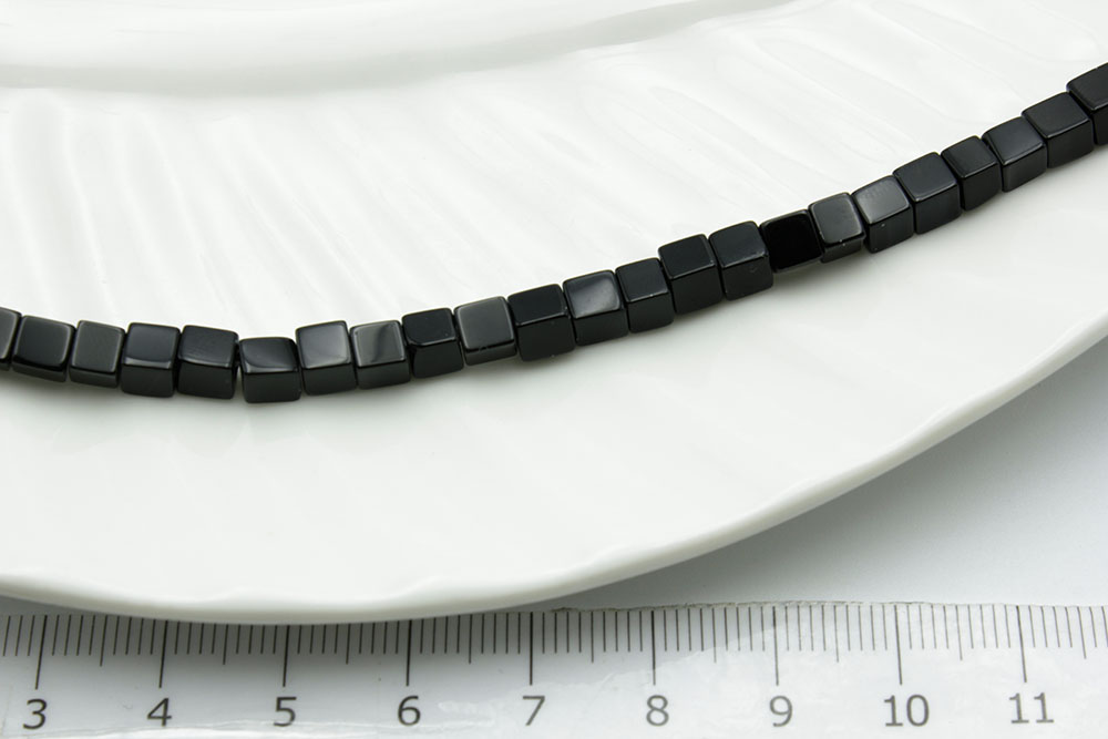 Агат черный кубик 4мм 20см/нить