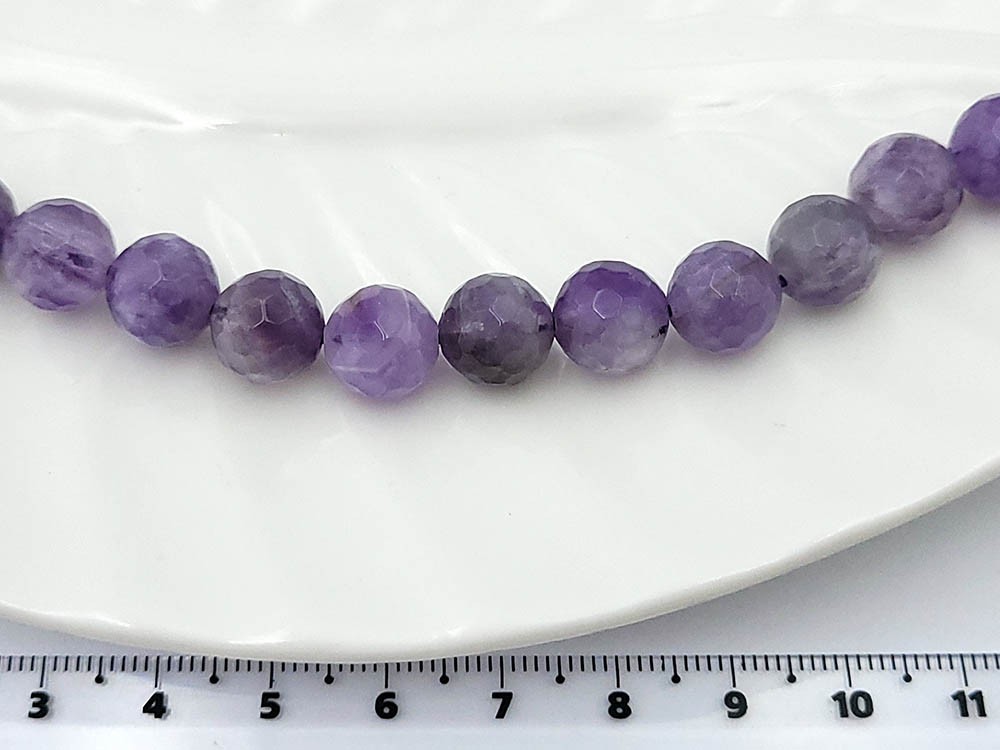 Аметист, круглый граненый 10 мм, 19 шт/нить