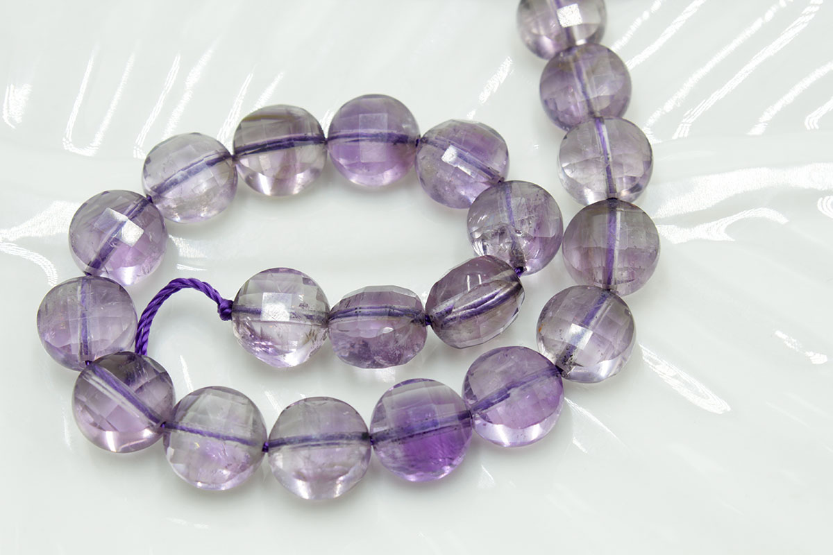 Аметист таблетка круглая граненая 10*10*6мм 20шт/нить