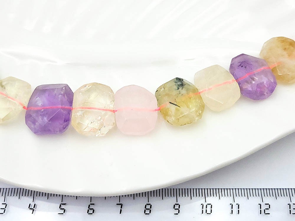 Аметист, пренит, цитрин, роз. кварц пластина граненая 20*14*6 мм, 13 шт/нить