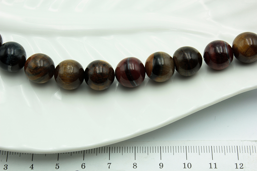 Ассорти, круглая 12мм, 14шт/нить, Бычий глаз, Соколиный, Тигровый