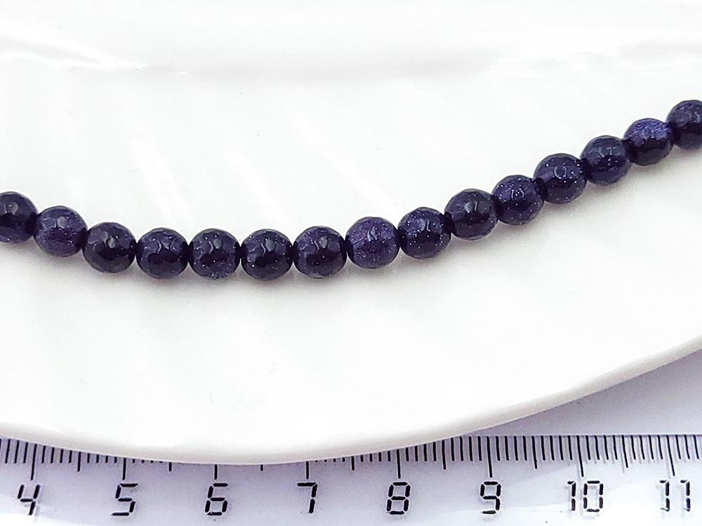 Авантюрин темно-синий, круглая граненая 6 мм, 32 шт/нить