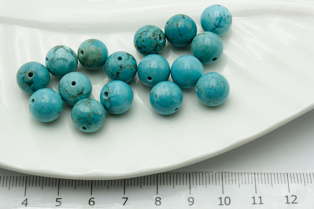 Бирюза натуральная голубая круглая 10мм 1шт/коробка