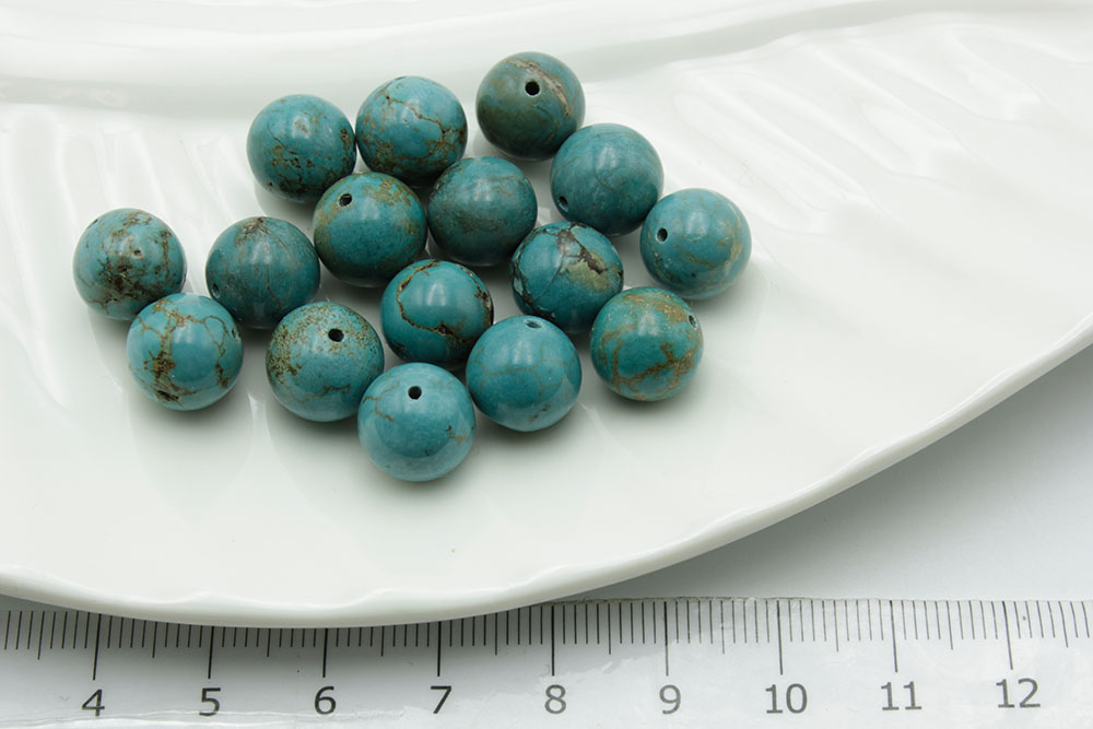 Бирюза натуральная грязно-синяя круглая 10мм 1шт/коробка