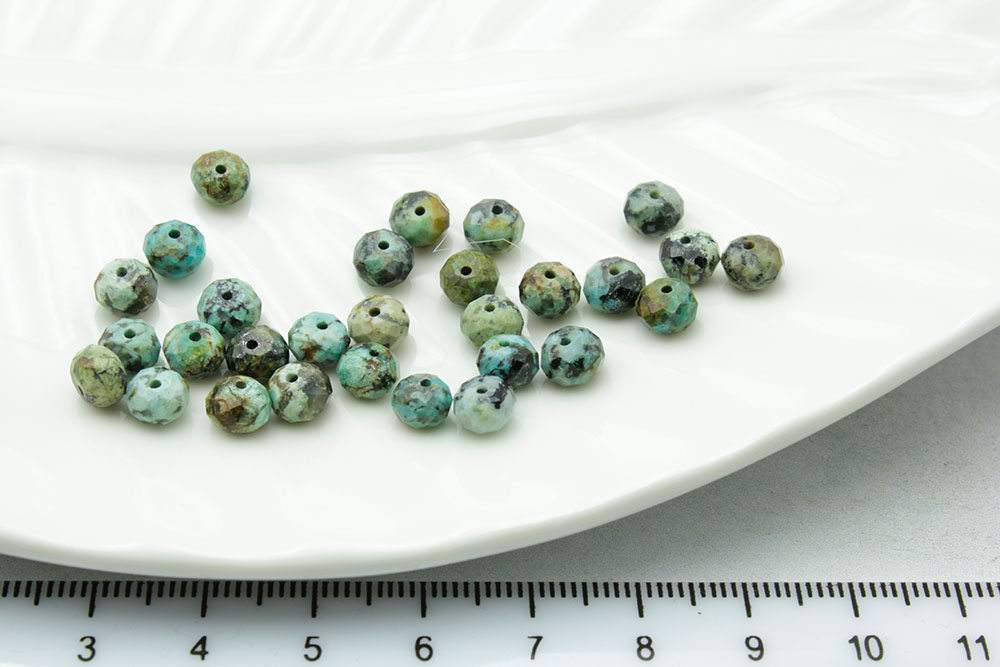 Бирюза натуральная круглая граненая 4мм 20см/нить